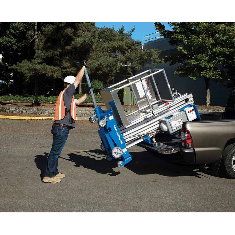 The Genie® AWP®-25S Super Series aerial work platform can be used in a variety of rental, light-duty construction and maintenance applications. Its lightweight design makes it easy to load and transport in vans.