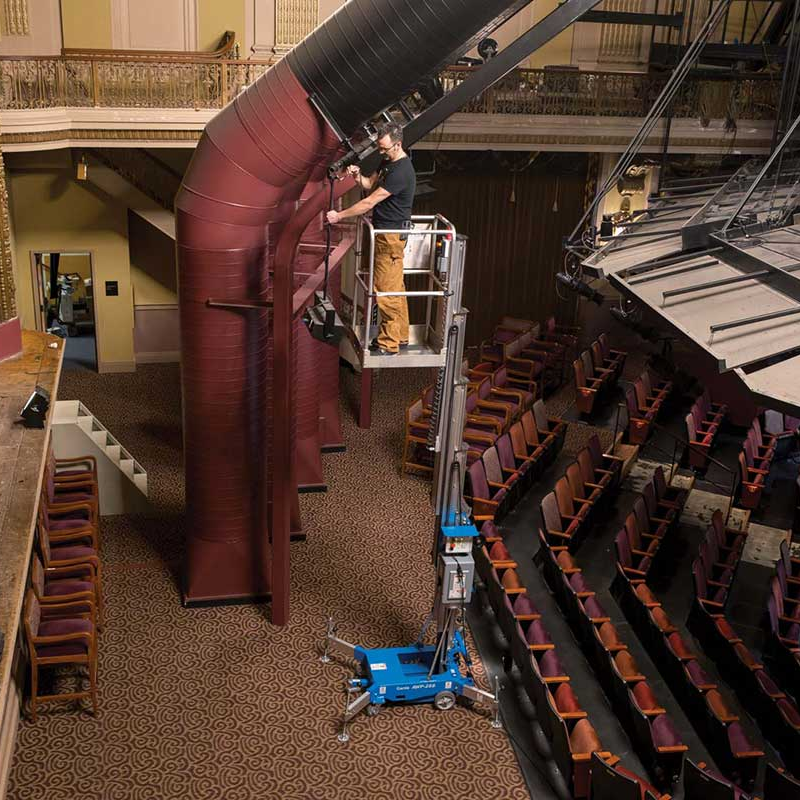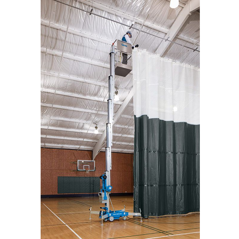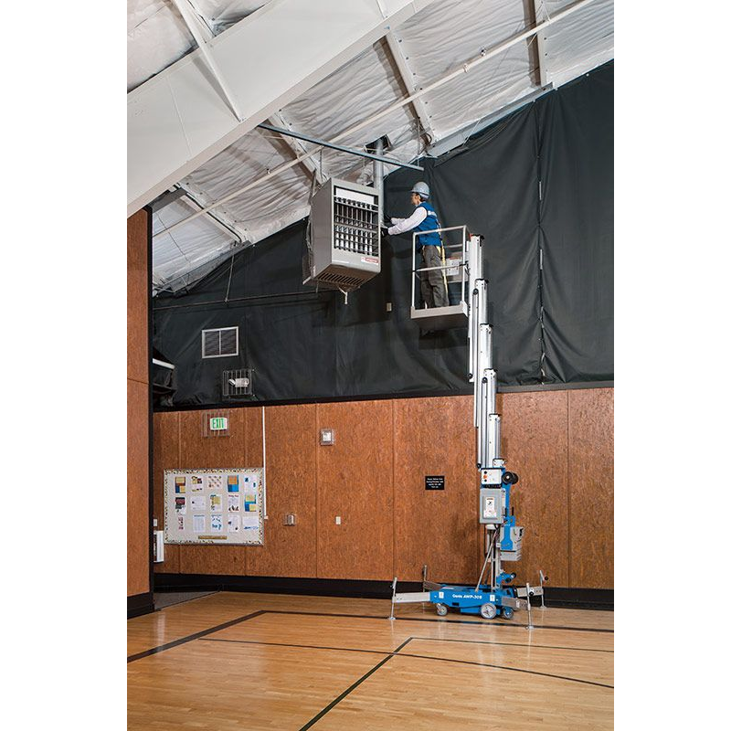 Genie® AWP™ push-around lifts are compact and easy to use, making them the first choice for a wide range of applications. One person can easily set them up and get to work at height within minutes. The AC or DC self-propelled lifting function allows for work in almost any access application, whether on-site power is available or not. AWP lifts are ideal for work in light-floor-load areas such as hospitals, schools, gymnasiums and theatres. The AWP models are light, suitable to be carried in vans and to work on sensitive floors, ideal for industrial maintenance, HVAC installation and shopping centres. They’re equipped with 4 stabilisers for increased reliability while working at height.