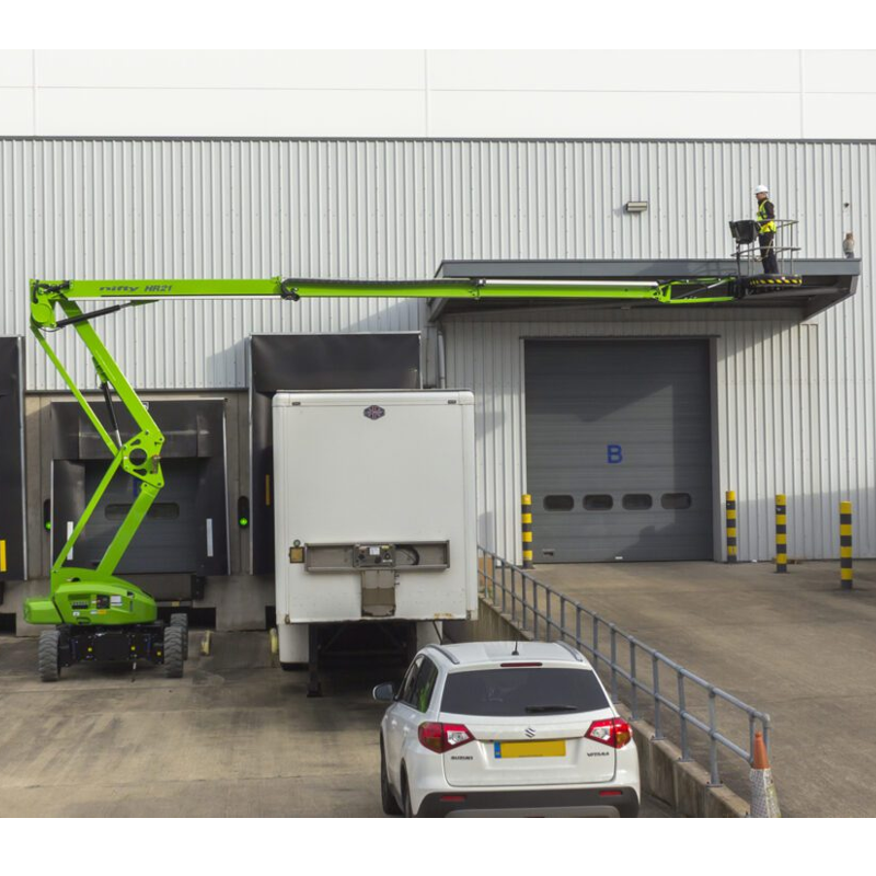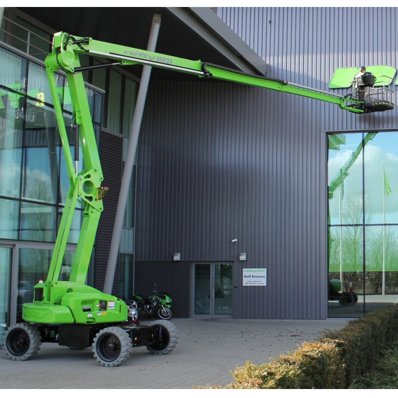 The HeightRider 21 All-Electric (HR21E) is a self-propelled cherry picker and will lift 2 persons and their tools to a working height of 20.8m or a working outreach of 13m.