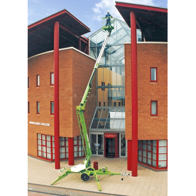 The Nifty 210 trailer mount has one of the largest unrestricted working envelopes in its class. The Nifty 210 trailer mount special boom design makes it ideal for working near walls or buildings. A single control allows its platform to move vertically while remaining parallel to the job, saving time and improving efficiency.