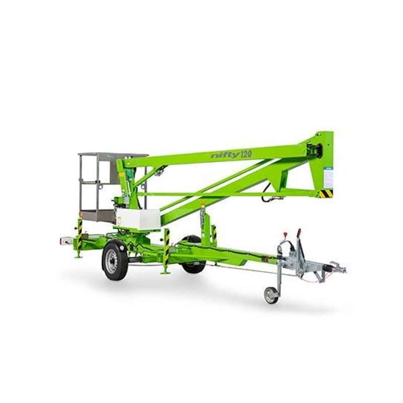 The Nifty 120T trailer mount is specifically designed to give maximum reach performance from the most compact chassis possible. By utilizing its versatile telescopic upper boom, the Nifty 120T trailer mount delivers unrivalled working outreach, especially at lower levels where it’s needed most.